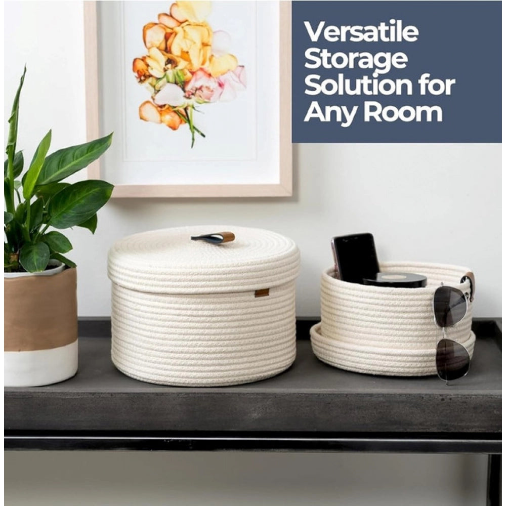 Cotton 2 Pcs Set Roti Box Storage Basket With Lid (White)