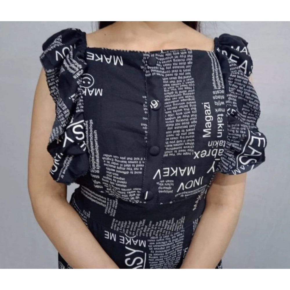 Women's Casual Crepe Sleeveless Dress (Black)